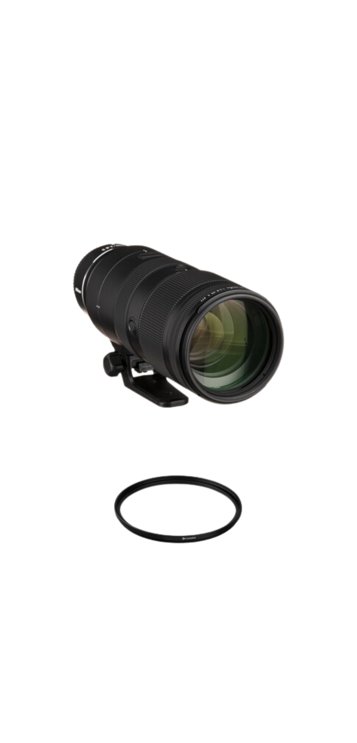 Construída com 21 elementos em 18 grupos, incluindo vidro ED, elementos asféricos, lente de fluorita e SR (short-wavelength refractive), além de revestimentos Nano Crystal e ARNEO, ela suprime aberrações cromáticas e reflexos para máxima clareza em toda a faixa focal.